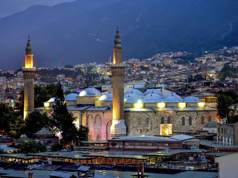 Fethiye’den gece 00:00’de Anılarımıza anılar eklemek için yolculuğumuz başlıyor. Gece konforlu aracımızla çeşitli molalarla Afyon üzeri Bursa’ya devam ediyoruz. Sabah saatlerinde Bursa’nın şirin köyü Cumalıkızık’a varıyoruz.Bu köyü vakti zamanında Küçük Emrah’ın oynadığı ‘’Kınalı kar’’ dizisinden hatırlayacaksınız .Yüzlerce yıldır kendi gelenek örf ve adetleriyle yaşayan bir Anadolu köyü burası..Öncelikle köyde bulunan kahvaltı salonlarında karnımızı doyuruyoruz. Daha sonra rehberimizin eşliğinde hem köyün ilginç mekanlarını hem de dizide kullanılan tarihi sokakları birlikte tanıma imkanı bulacağız. Burada gezimizin sonunda Bursa Merkeze geçiyoruz. Bursa’yı tepeden fotoğraflayabileceğimiz Tophaneden başlıyoruz. İlk ve ikinci Osmanlı Padişahları Osman ve Orhan Gazilerin türbelerinin de bulunduğu tepeye ‘’TOPHANE’’ denmesinin sebebi kale içinde eski. zamanda topların döküldüğü yer olmasındandır. Bursa fotoğraflarımızı çekip, tarihi saat kulesini de gördükten sonra yürüyerek çarşı merkezine gideceğiz. Yukarıdaki fotoğrafa Minberini koyduğumuz Bursa Ulu Camii ilk durağımız…Yapıldığı 1399 döneminde Osmanlı Devletinin kuruluşunun 100.Yılında gerçek bir başyapıt…Devrin Astronomları güneş sistemi haritasını minderine nakşetmişlerdir. Minber ayrıca Künde kari dediğimiz, hiç çivi kullanılmadan sert ceviz ağacından yapılmış plakalarla birbirine bindirilerek geçme usulü ile yapılmıştır .Ecdadımızın bilime fen’e ne kadar önem verdiğini ve Camii şerifin tarihini rehberimizden dinleyip ardından,hemen yan taraftaki tarihi ipek çarşısı KOZA HAN’a geçiyoruz.. Tarihi handa ipek şallar,örtüler kıyafetler sizi bekliyor…..